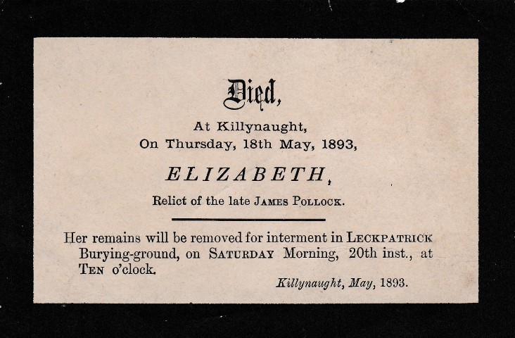 POLLOCK, Elizabeth. Killynaught. 18 May 1893
