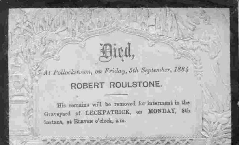 ROULSTONE, Robert. Pollockstown. 5 Sep 1884
